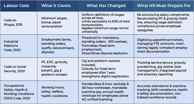 In November 2025, the Indian government consolidated 29 fragmented & outdated labour laws & merged them into 4 new labour codes. The upcoming implementation is not merely a legislative update— but a structural reset of how organisations design compensation, manage time, document employment, and ensure compliance across a diverse workforce. For HRs, the main challenge is to translate these codes into the daily operational discipline across industries, locations, and worker categories to adhere to the codes when implemented.